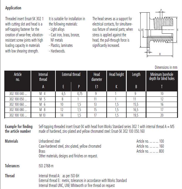 302-1型自攻泉州丝套是一种新型的紧固件,使用后能够加强螺纹强度。产品有内外牙,将其嵌入塑料,铝合金,铸铁,铜等较软材料内,形成的内螺纹孔就可以具有较高的强度。